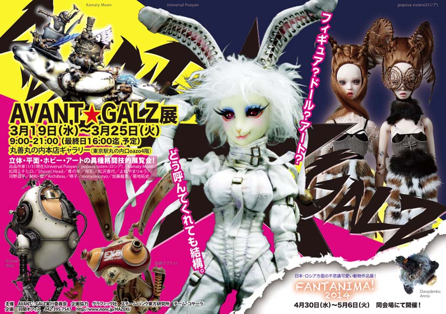 今年初めて開催されるAVANT☆GALZ展は、現代アートも着目するホビークラフトとポップアートの境界上で、樹脂、布、メタルを素材に、個性的表現や技術にこだわり前進を続ける作家たちをご紹介する画期的な展覧会です。
